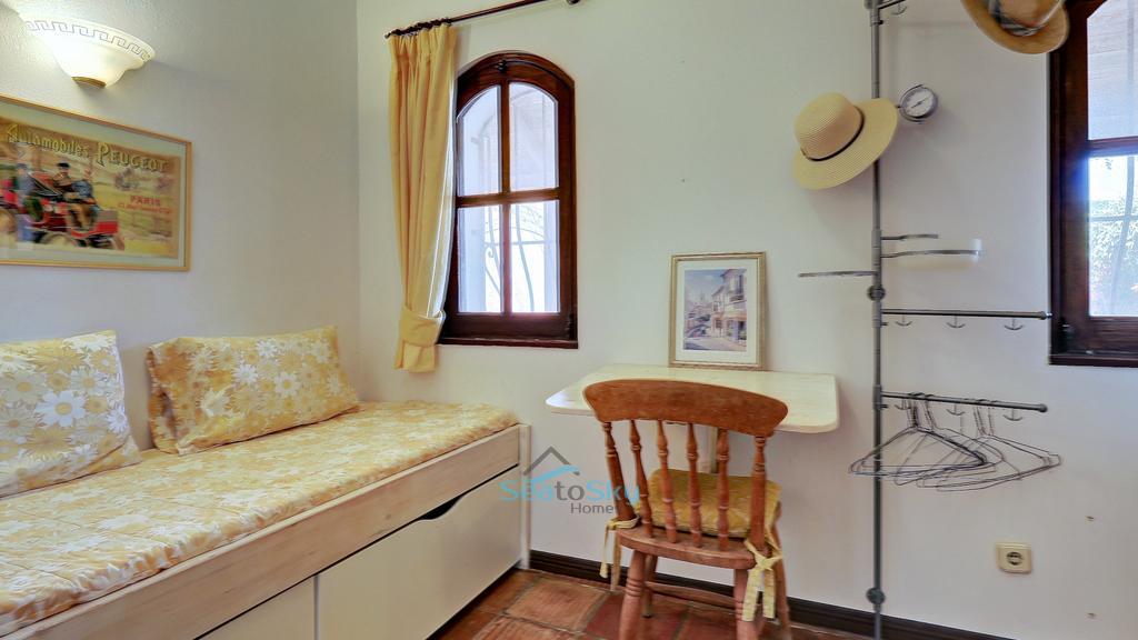 Separate from the main house is a self-contained guest annex (converted from a garage) with its own entrance and decked terrace area. It features an open-plan living area with kitchenette, a separate bedroom area with wardrobes, and an area with bunk beds that can also be converted into a desk/office area that leads through to the shower room. Patio doors lead to the terrace area, bringing the outside in, and there are amazing unobstructed panoramic views down to the village of Figueira. For year-round comfort, there is air-conditioning to heat and cool, as well as a log burner.