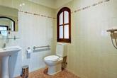 There is also another double bedroom off of the entrance hall with space for a large wardrobe and patio doors leading to the covered terrace by the pool area. Across the hall is a family bathroom with shower.