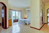 The corridor leads on to another of the en-suite bedrooms with built-in wardrobes, a bathroom with bath and overhead shower, and patio doors that lead to the pool terrace. There is also a smaller single bedroom in this area that could also be used as an office, a dressing room, nursery or laundry room.