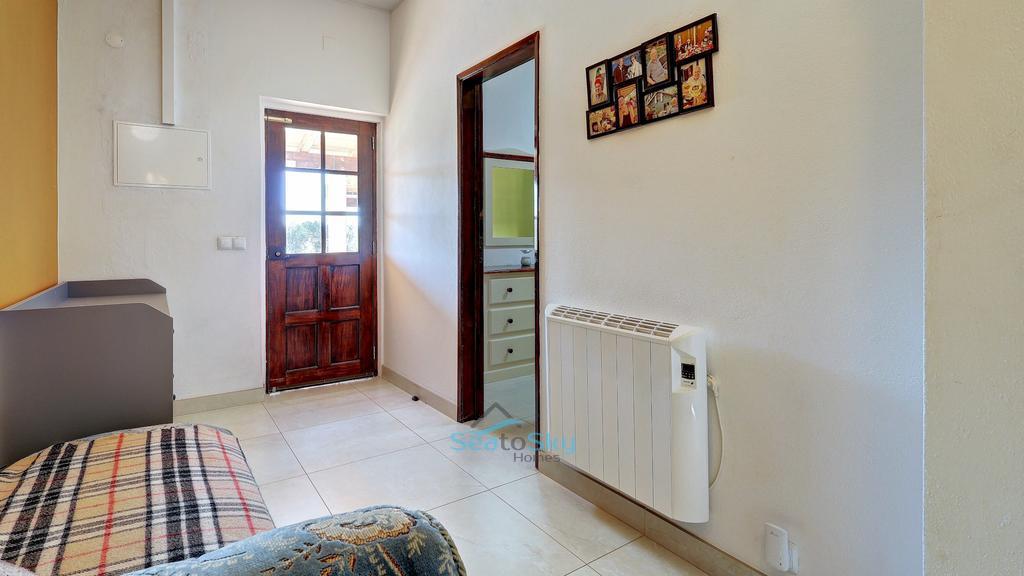 Existe uma garagem anexa com uma pequena área de oficina e lavandaria (36m2), e que tem uma porta e uma janela para o jardim. Junto a esta garagem, os portões da estrada conduzem a um telheiro com sombra. Do outro lado da rua há um pequeno terreno (aproximadamente 400m2) com algumas árvores de fruto, ideal para cultivar legumes ou criar animais.