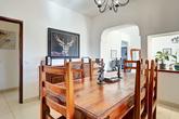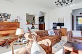 Um alpendre coberto conduz à porta da frente com vitral. Esta abre-se para o hall de entrada, com vistas deslumbrantes através da sala de estar para o jardim e para o vale. A espaçosa sala de estar possui uma parede de portas de vidro deslizantes com fácil acesso ao terraço coberto e ao jardim. Uma lareira a lenha mantém esta sala acolhedora nas noites de inverno. A partir da sala de estar, 2 degraus conduzem à sala de jantar, que também tem uma janela para o jardim. A cozinha elegante está bem equipada com muitos armários, bancadas em madeira, eletrodomésticos integrados e um balcão de pequeno-almoço. Uma janela panorâmica sobre o lava-loiça oferece vistas para as colinas a norte. Há uma despensa separada ao lado da cozinha com muito espaço de arrumação.